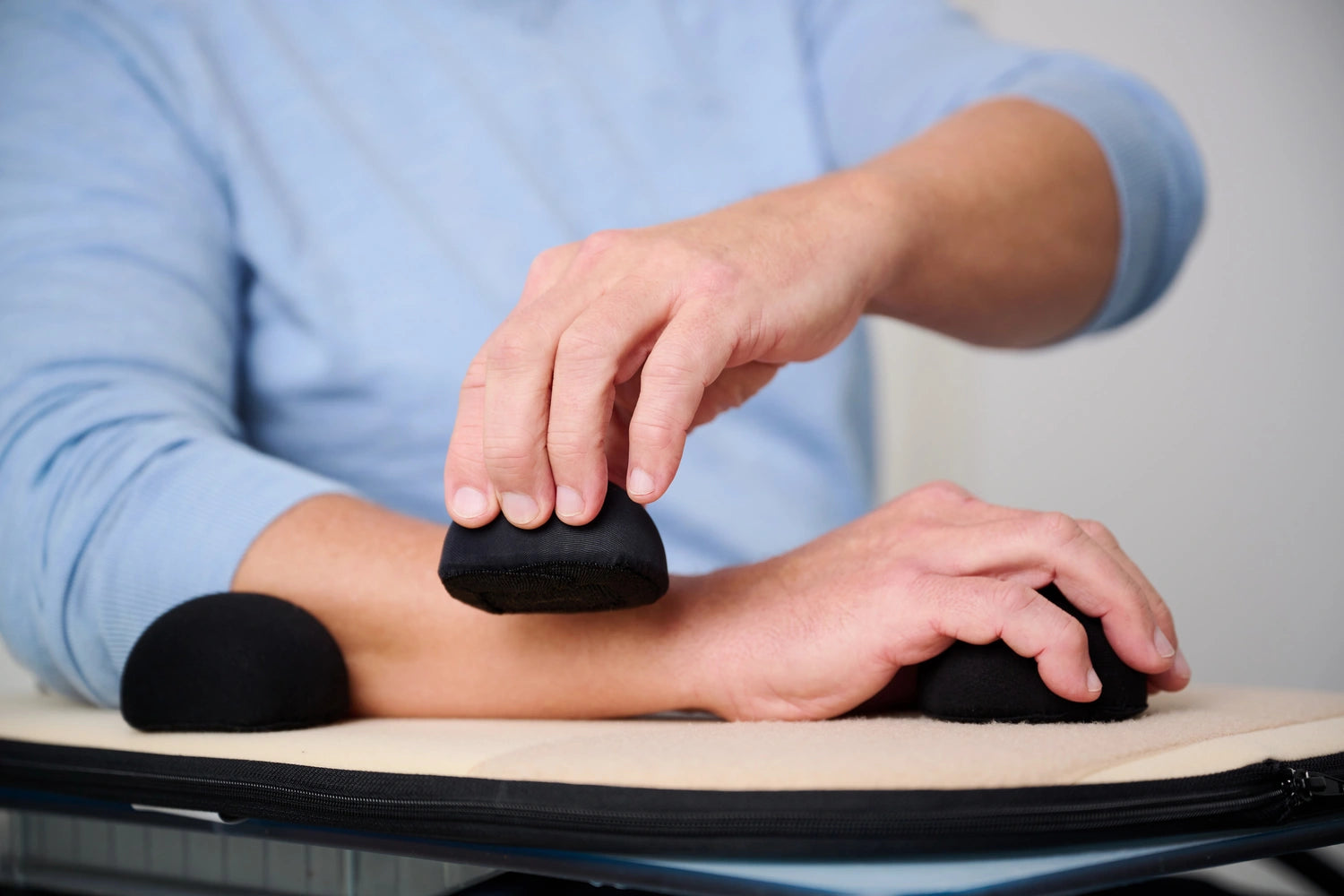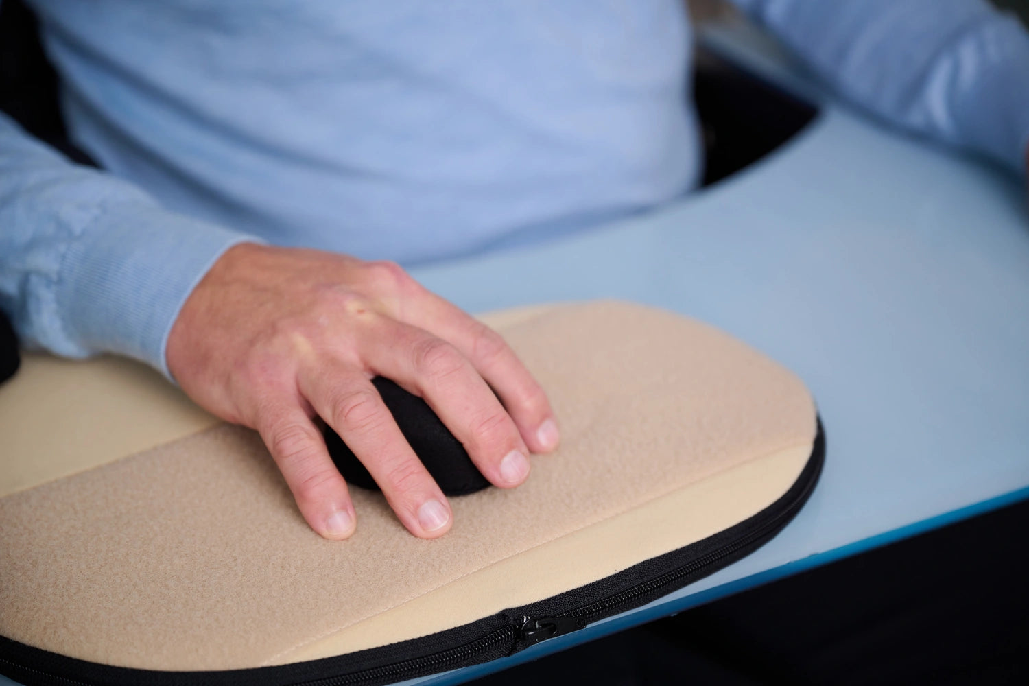 Die APARENT® Aktiv Arm-Lagerungsschiene ist so konzipiert, dass sie im Alltag unkompliziert und flexibel eingesetzt werden kann. Dank der individuell anpassbaren Klettverschlüsse und dem leichten, ergonomischen Design ermöglicht sie eine optimale Lagerung des Arms - ob im Rollstuhl, am Tisch oder im Bett.